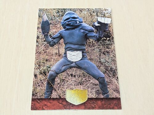 「仮面ライダー トレーディングコレクション V3・X編 092 ヒュドラー」 発売日 1999年 価格 メーカー 天田印刷加工 「仮面ライダーX」の第11話に登場したヒュドラーのカードです。東京の経済を混乱させるために暗躍しました。