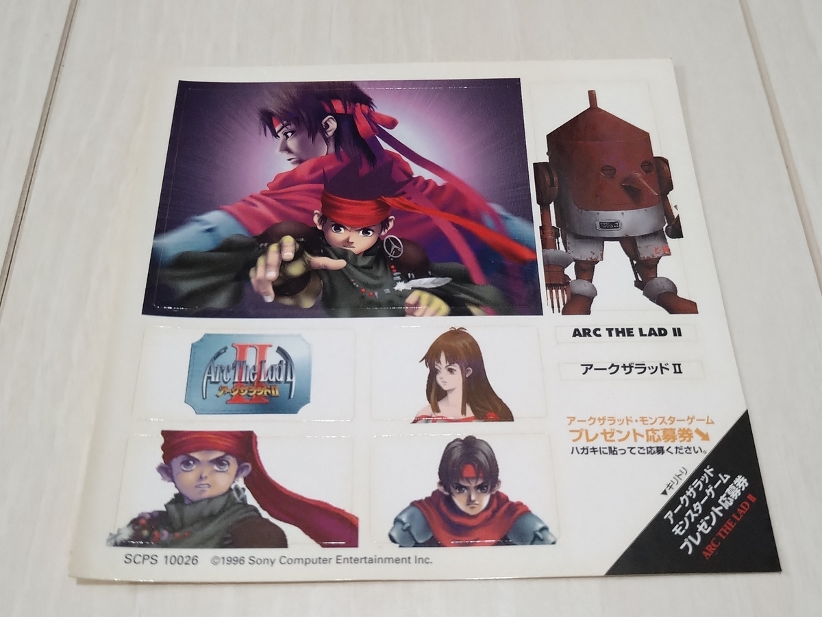 | アークザラッドⅡ シール&応募券 | 1996年11月1日 | ソニー・コンピュータエンタテインメント | 「アークザラッドⅡ」の初回生産分に封入されていました。 | ![]() |