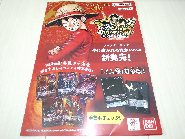 2025-10-27 ワンピース カードゲーム リーフレット グッズ紹介 「ワンピース カードゲーム リーフレット」 発売日 2025年 価格 メーカー バンダイ 「ワンピース カードゲーム」3周年を宣伝したリーフレットです。玩具店や家電量販店で配布されました。